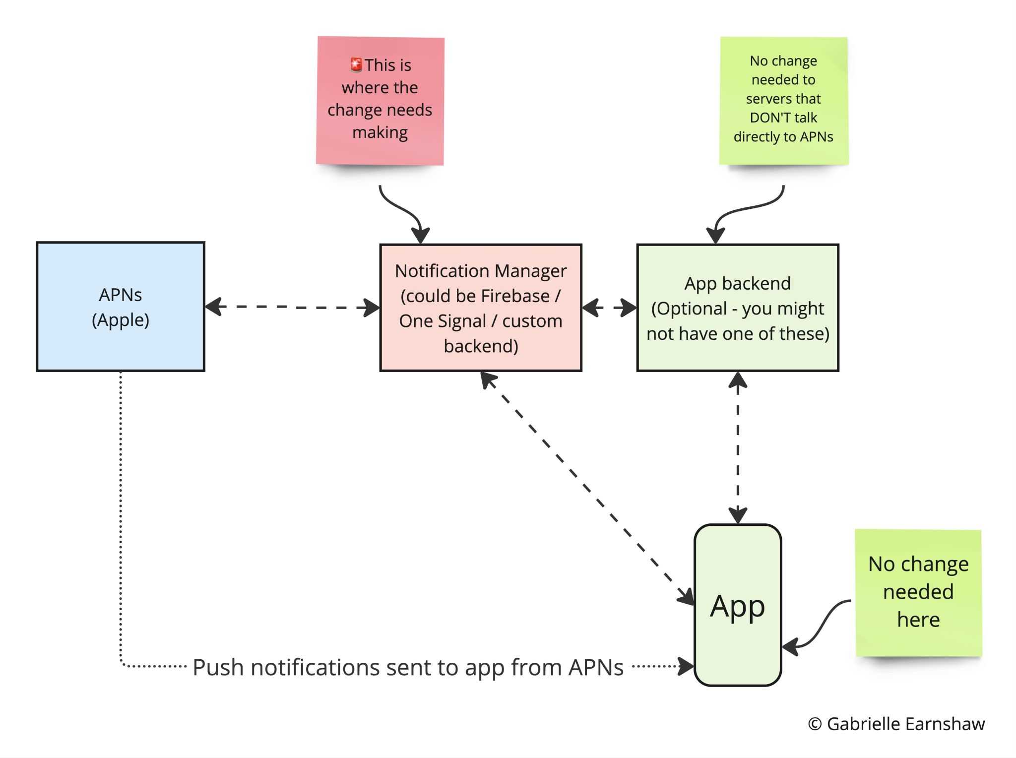 - If you use a third party, such as Firebase or One Signal to send notifications, you don't need to worry, they'll handle the update at their end.